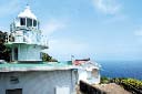 三島由紀夫の小説「潮騒」に登場する灯台(左)と監的哨跡(右)。対岸の伊良湖岬にあった旧陸軍の試砲場から発射した砲弾の着弾点を確認するための施設としてつくられたのが監的哨です。