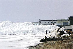 オホーツクの沿岸には毎年冬になると流氷が押し寄せます。アムール川がシベリアの豊かな栄養分を海へもたらし、そこでプランクトンが大発生します。そのプランクトンが海流に乗ってオホーツク海の沖にまでやってくるのです。しかし、海流は海の恵みをもたらしてくれるだけとは限りません。冬には流氷も運んできます。サロマ湖の中に巨大な破壊力で流氷が押し寄せることによって、ホタテの養殖に大きな被害がでることもあるのです。昭和49年(1974年)には第1湖口から流入した流氷が湖面の80%を覆いつくし、ホタテ養殖に大きな打撃を与えたことがありました。