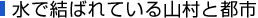 緑豊かな山は自然のダムとも言われるように、高い保水能力をもっています。日本の川が年間を通して涸れることなく流れているのは、山に降った雨や雪を蓄えてくれるからです。手入れが行き届かなくなり、山が荒れると、保水能力を失い下流の街や村に水害を引き起こしてしまいます。下流の都市へ水を供給する大切な働きも低下します。さらに上流域の水が汚れると下流域では安心して水が使えなくなってしまいます。下流域の街や村にとっても山林の整備は大変に重要です。山村で使用した生活排水で川が汚れないようにしなければなりませんが、起伏が多く人口密度の少ない山村での下水道はコストがかかり、なかなか整備が進まないのが実情です。