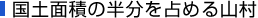 そこで昭和40年(1965年)に「山村の経済力の培養と住民の福祉向上を図り、地域格差の是正と経済の発展に寄与することを目的」にした山村振興法が制定されました。山村振興法に基づく「振興山村」と呼ばれる地域は、平成22年(2010年)4月現在、全国の1,719市町村の約4割に当たる735市町村が指定されています。そして735市町村の面積は国土面積の約5割、森林面積の約6割を占めています。振興山村というのは、面積の約8割が森林で、まとまった平地が少なく、農業や林業といった第一次産業に依存する割合が高い地域のことです。